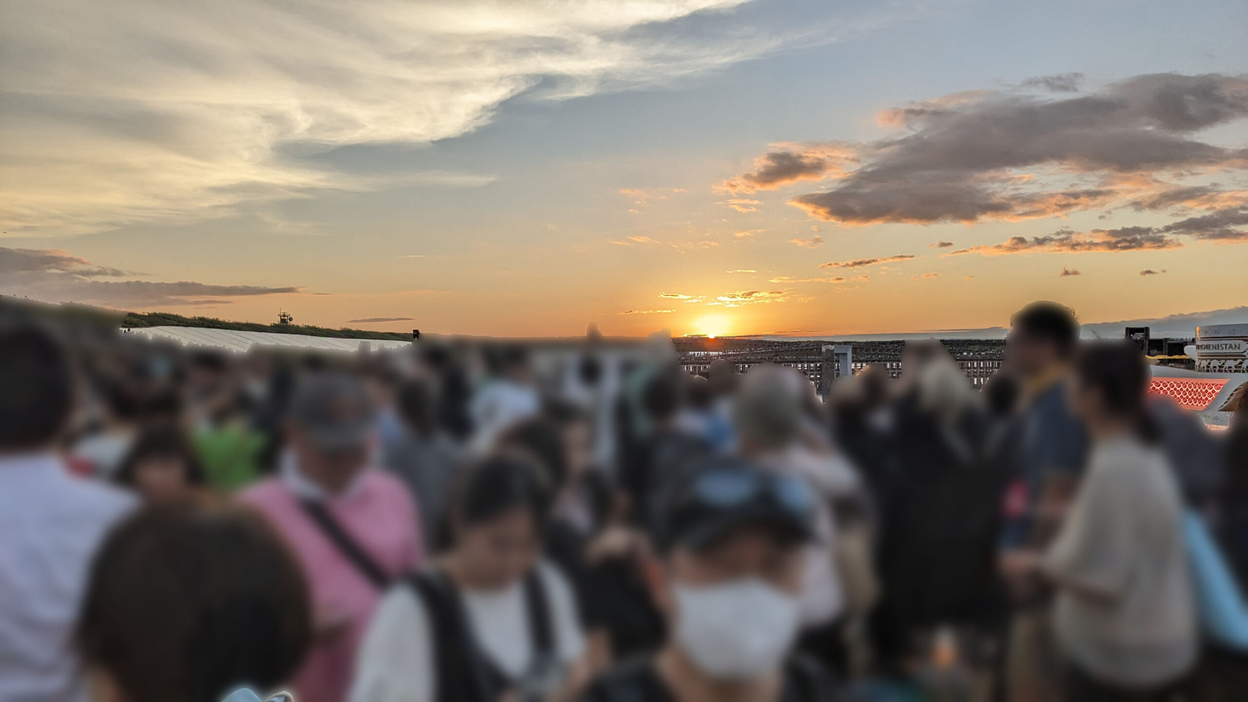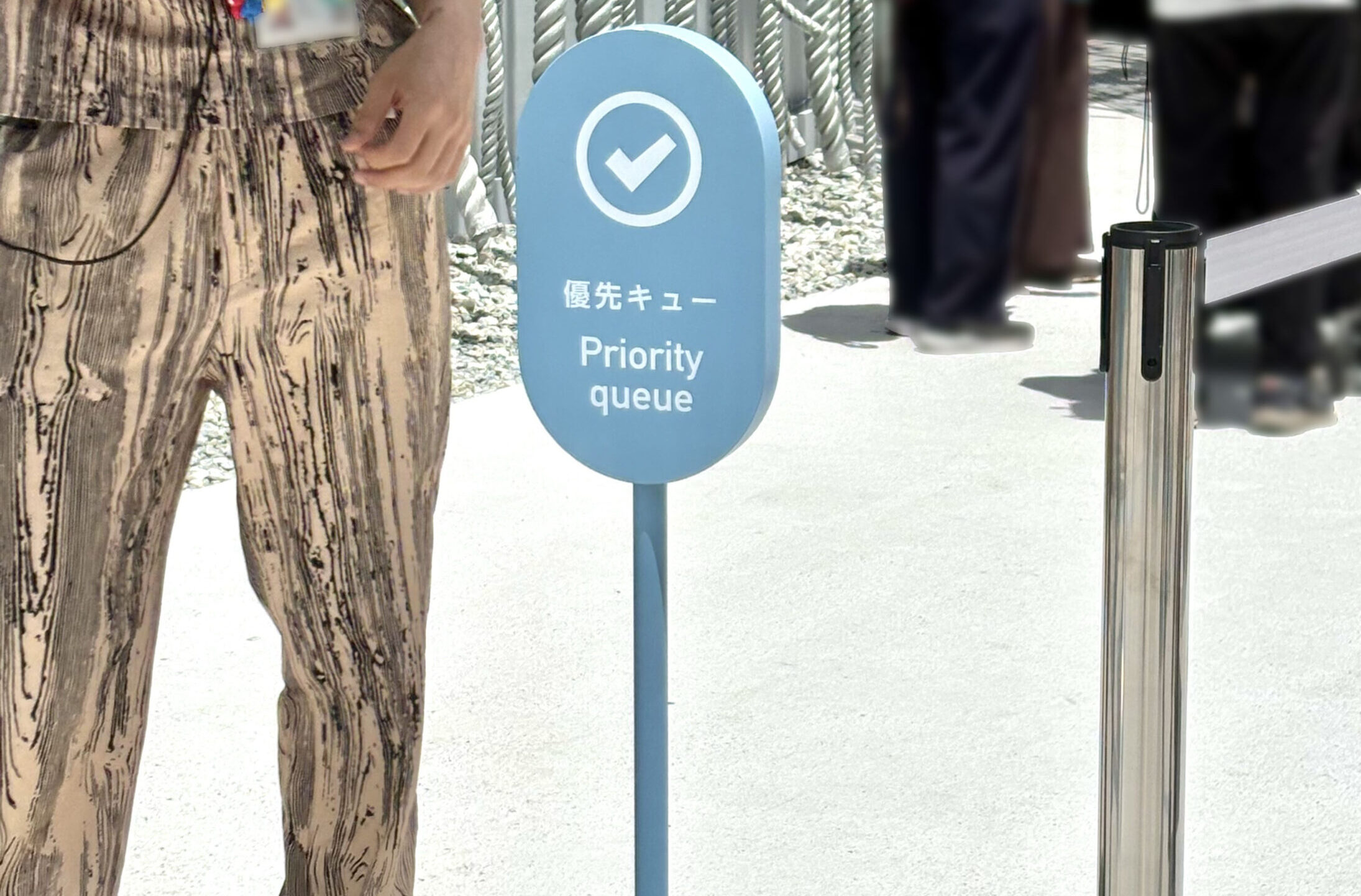 交通は自家用車を利用し、夢州の障がい者駐車場から東ゲートへ直接アクセス。一般来場者の長い列とは分離され、障がい者レーンでは会場まで約15分、入場待ちに10分ほどかかりました。(写真下)