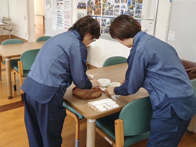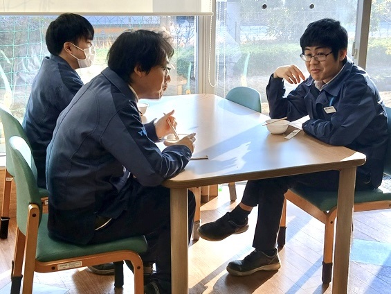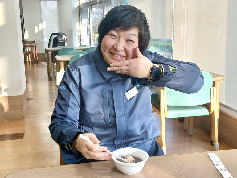 毎年社内の食堂で行われるお正月行事の鏡開き。当日は食堂から小豆を炊く甘い香りが漂ってきました。今年の準備を進めてくれたのは、WさんとKさん。協力して準備を進める様子は、「今年も始まったなぁ」と、実感させてくれます。